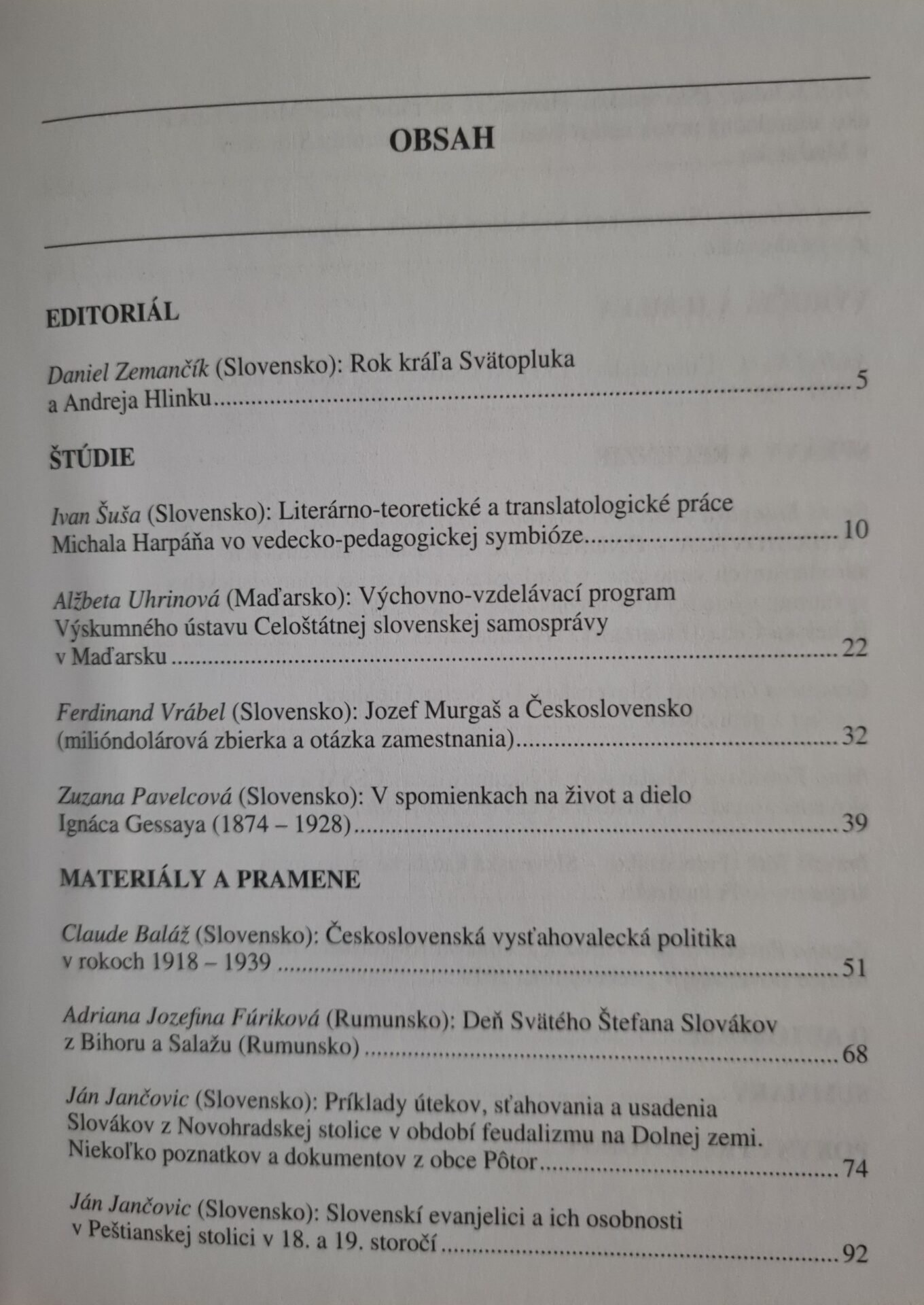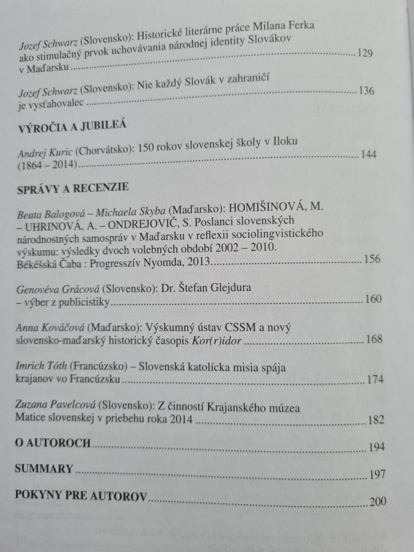 Štúdie a materiály zo života krajanov, spomienky na významné výročia slovenských osobností pôsobiacich v zahraniční, recenzie a informácie z krajanského sveta a z Krajanského múzea Matice slovenskej. Prezentácia širokého spektra tém, týkajúcich sa najmä dejín Slovákov v zahraniční, ich literatúry a jazyka, osobností, zvykov i tradícií slovenských komunít vo svete. Bližšie informácie o obsahu nájdete nižšie.